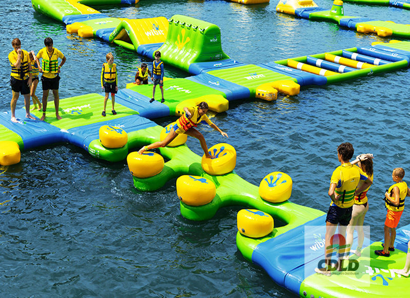 WIBIT, c’est un large éventail de modules gonflables aquatiques assemblables entre eux, qui permettent de réaliser une multitude de combinaisons possibles pour transformer votre piscine, votre lac ou tout autre plan d’eau en un «parcours», ou une «arène» aquatique.